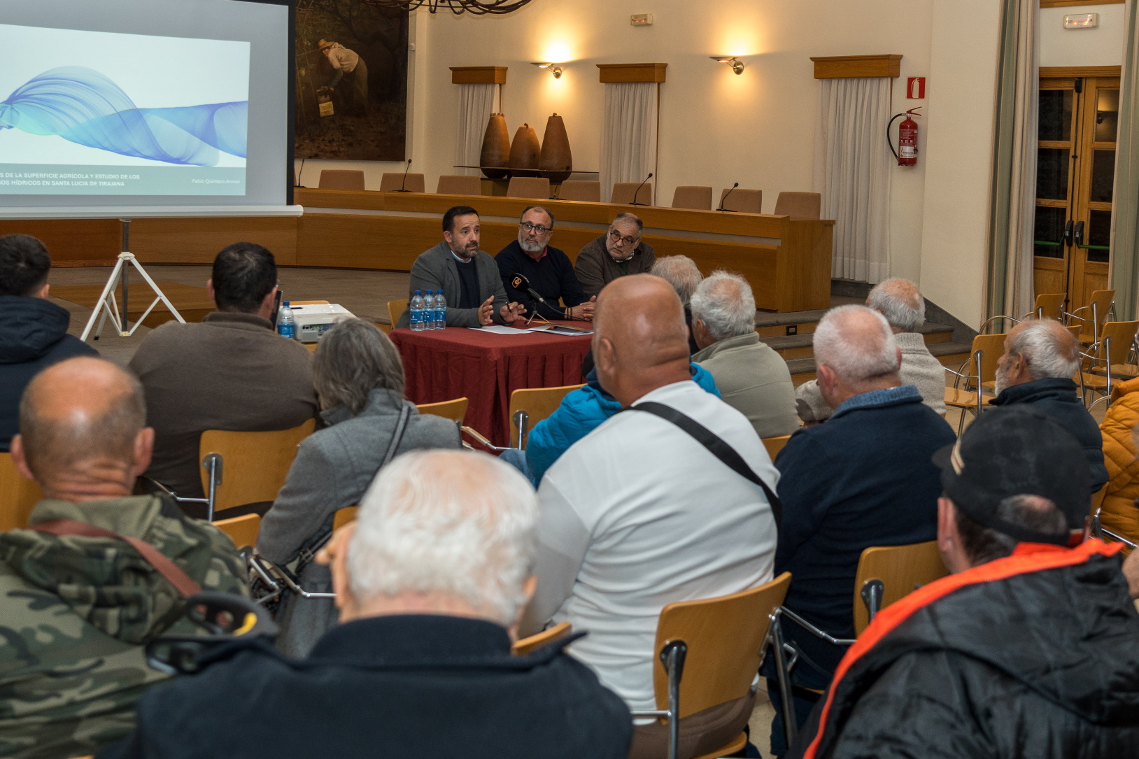 El estudio fue presentado en las Casas Consistoriales de Santa Lucía casco en un acto en el que estuvieron presentes agricultores y miembros de las comunidades de regantes. Durante la presentación el alcalde de Santa Lucía de Tirajana, Francisco García manifestó que “el agua es fundamental para el mantenimiento de las zonas rurales, y por eso la concejalía de Aguas del Ayuntamiento y el Consejo Insular de Aguas estamos trabajando conjuntamente para mejorar las redes que hay en la zona alta y garantizar el abastecimiento para la agricultura”.