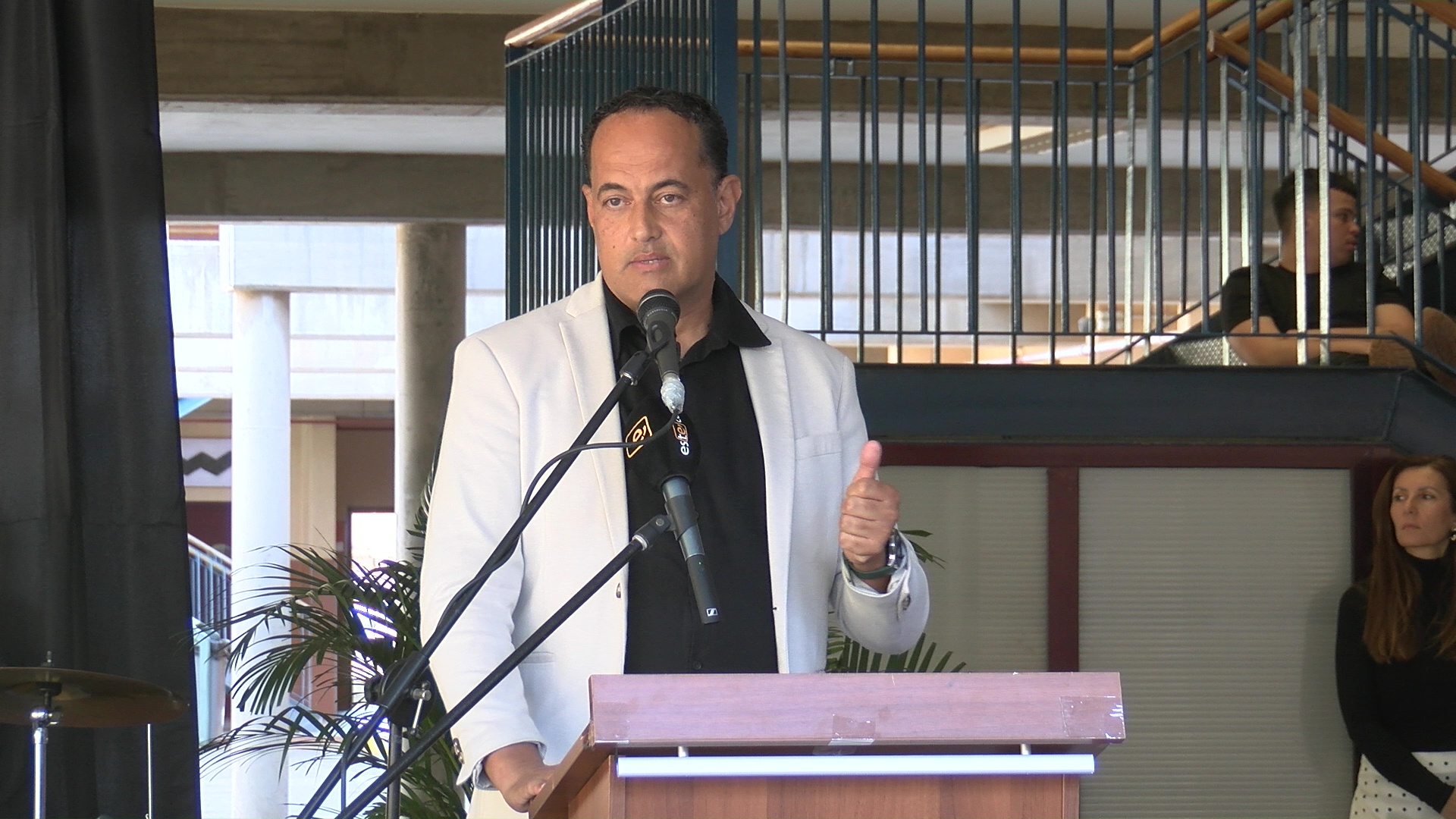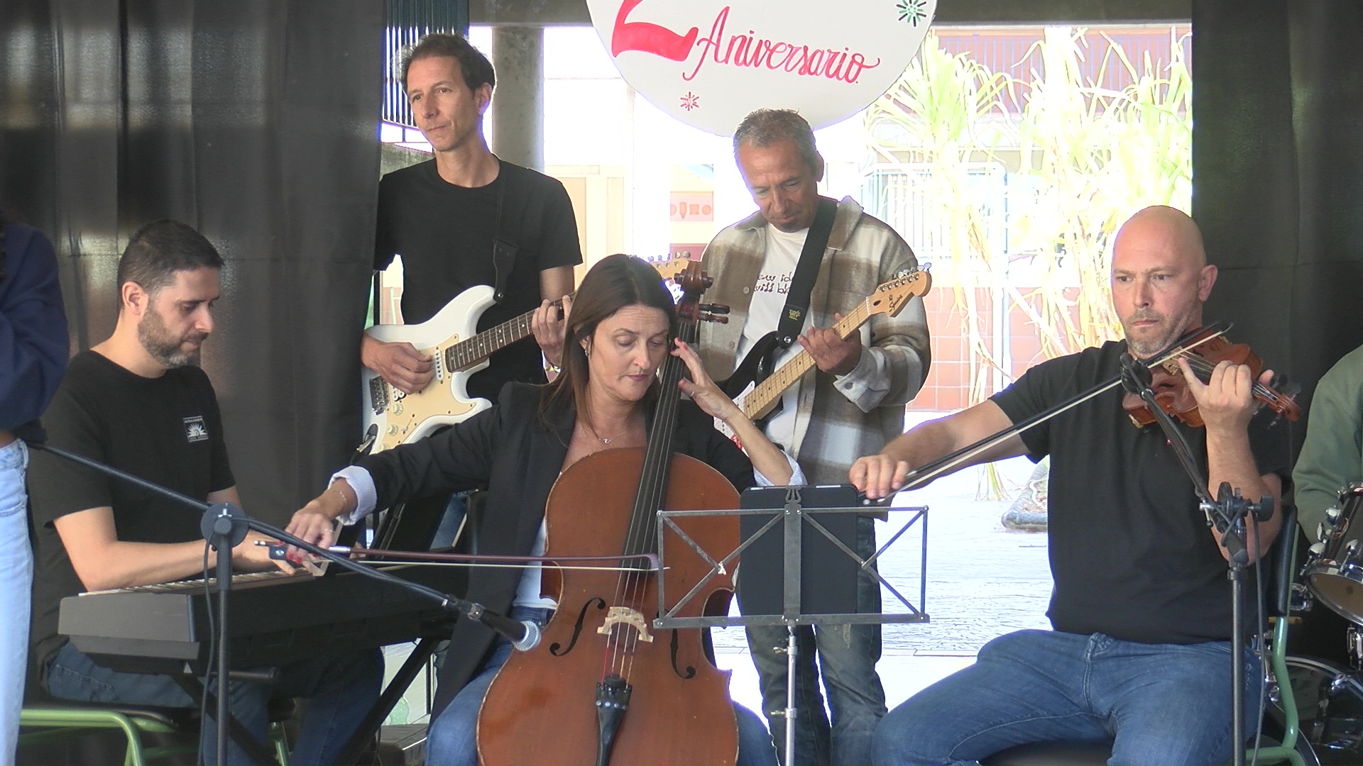Tras las palabras institucionales, se dio paso a un programa artístico que comenzó con la lectura de un poema conmemorativo del 25 aniversario, a cargo de Ana Lourdes Pérez Cabrera, acompañada por el músico y docente Abraham Ramos Sánchez interpretando de base ‘Chipude’ de José Antonio Ramos. A continuación, alumnado de 4.º de ESO interpretó la pieza “The Entertainer”, de Scott Joplin, con una puesta en escena que combinó música y humor, protagonizada por un simpático y algo torpe director de orquesta interpretado por el docente de matemáticas Pepe Santana Cáceres. El cierre musical del acto llegó con una magnífica interpretación de la canción “My Immortal”, de Evanescence, a cargo de Paula Suárez Valentín, con el acompañamiento musical de Aarón Guedes Marrero y profesorado del centro.