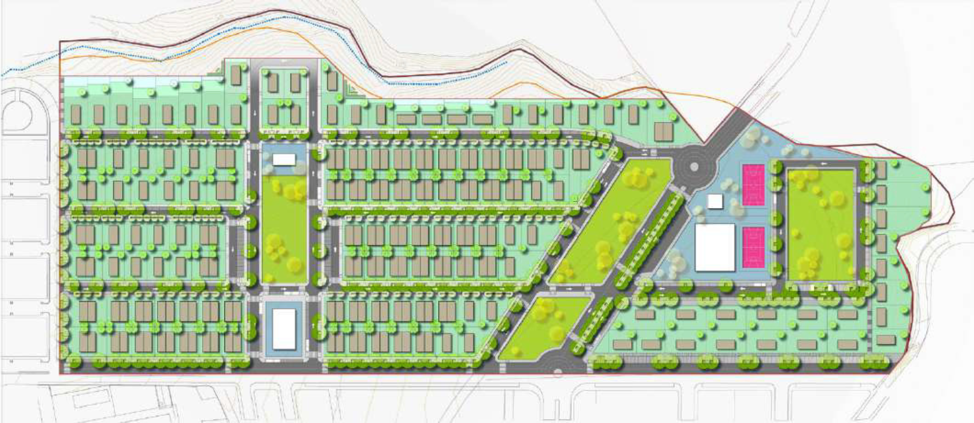El plan reserva 9.882,42 metros cuadrados para espacios libres públicos y contempla 630 metros cuadrados para uso social, 2.758,34 metros cuadrados para equipamiento deportivo público, 2.874,10 metros cuadrados para uso educativo y 901,57 metros cuadrados para uso comercial. La superficie destinada a sistema viario alcanza los 35.635,58 metros cuadrados y se establece, como mínimo, una plaza de aparcamiento por vivienda fuera de la red viaria.
