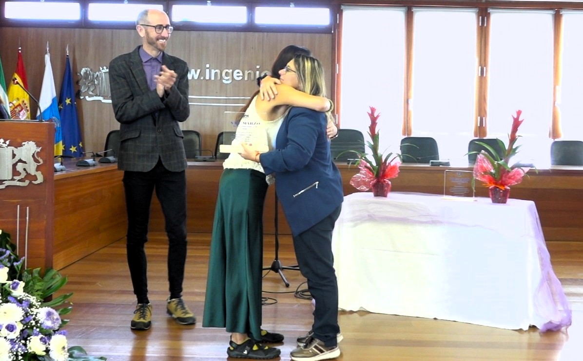 El momento central de la jornada fue la entrega de la Distinción 8M a Alejandra Armas Sosa, matrona con más de veinte años de trayectoria profesional y actualmente destinada en el Centro de Salud de Ingenio, y a Nicolás Hernández Santana, enfermero y matrón con más de quince años de experiencia en el ámbito de la salud sexual y reproductiva. Este último no pudo asistir al acto, aunque participó a través de un mensaje en vídeo en el que agradeció el reconocimiento recibido y destacó el vínculo creado con las mujeres y familias a las que ha acompañado a lo largo de su trayectoria.
