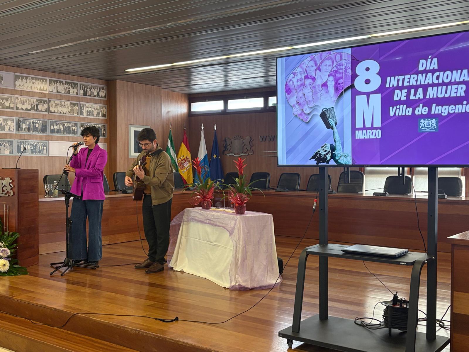 El acto institucional contó con momentos musicales a cargo de Lara Hernández y Abraham Ramos, quienes interpretaron las piezas “Guerrera” de Valeria Castro, “Folías a la Mujer” (tema preparado especialmente para la ocasión) y “La vie en rose” de Edith Piaf, emocionando con su arte, talento y su dulzura a todas las personas presentes.