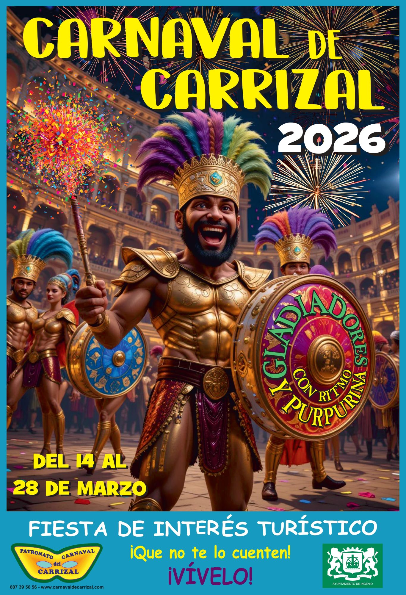 El carnaval volverá a tomar las calles del municipio con la celebración del Carnaval de Carrizal 2026, que se desarrollará del 14 al 28 de marzo bajo la alegoría “Gladiadores”. La programación, organizada por el Patronato del Carnaval de Carrizal y el Ayuntamiento de Ingenio, ofrecerá dos semanas de actividades festivas pensadas para todos los públicos.