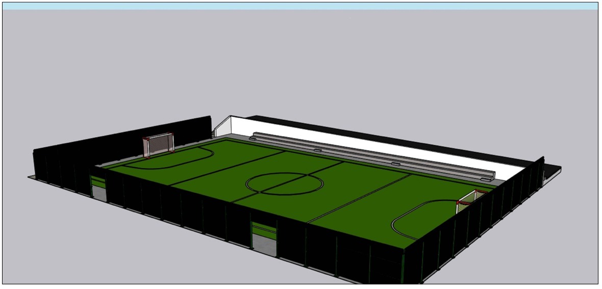 La actuación contempla también la instalación de un nuevo vallado metálico perimetral de aproximadamente 3,30 metros de altura en tres de los lados del recinto para mejorar la seguridad y el control del espacio. También se incorporará una pequeña grada modular prefabricada de hormigón de altas prestaciones en la zona norte, aprovechando el espacio recuperado junto al nuevo muro.
