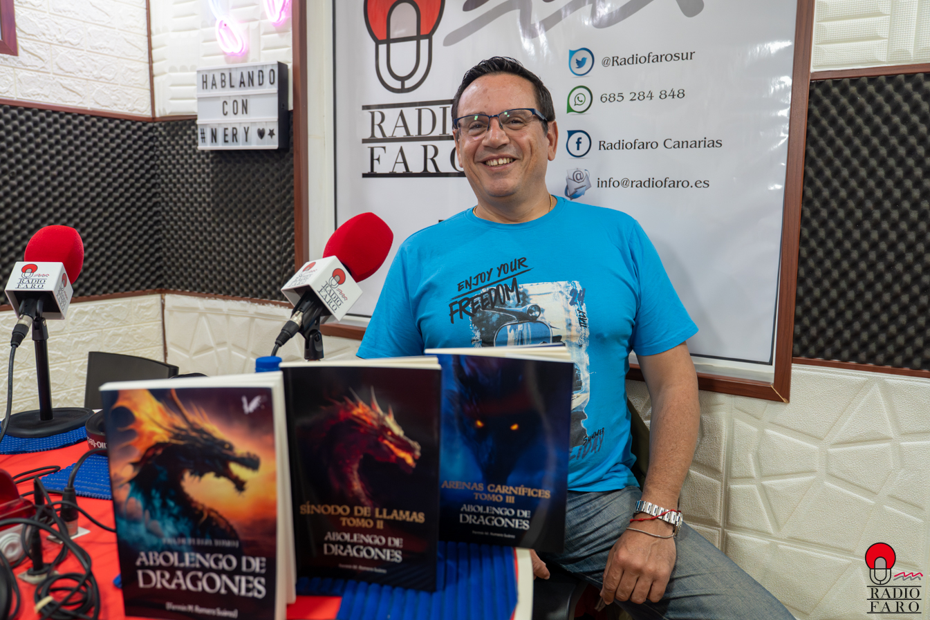 El escritor Fermín Romero Suárez regresó a Radio Faro para presentar “Arenas Carnífices”, el tercer tomo de la trilogía “Abolengo de dragones”, una obra con la que culmina una saga que ha ido creciendo libro a libro y que, aunque nace con vocación de cierre, deja también una “ventanita abierta” a posibles continuaciones. El autor explicó que este volumen le ha permitido cerrar tramas pendientes y completar el círculo narrativo que había imaginado desde el inicio, aunque reconoció que el desenlace final fue tomando forma durante el propio proceso de escritura.