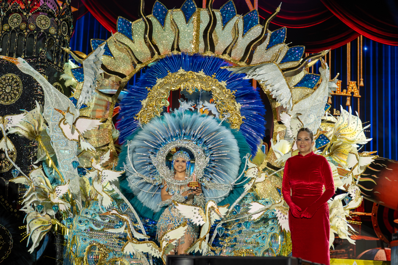 La gala, presentada con maestría por Raquel Sánchez Silva y Miguel Ángel Guerra, alcanzó su clímax con la lectura del acta donde también se otorgó el título de Primera Dama de Honor a Norma Ruiz Brito, quien desfiló con el diseño “Raffinato” de Antonio Ceballos (patrocinado por Gael Automoción y Darque Car), mientras que el puesto de Segunda Dama de Honor recayó en Coraima Martín Sánchez, con la obra “La charca, donde anidan los sueños”, creada por Masbe Creaciones con patrocinio de Carrozas José Halcón.