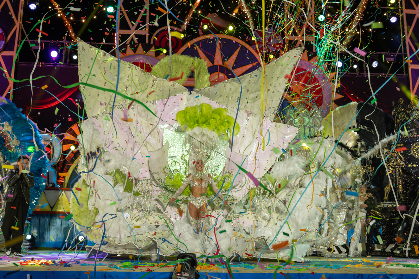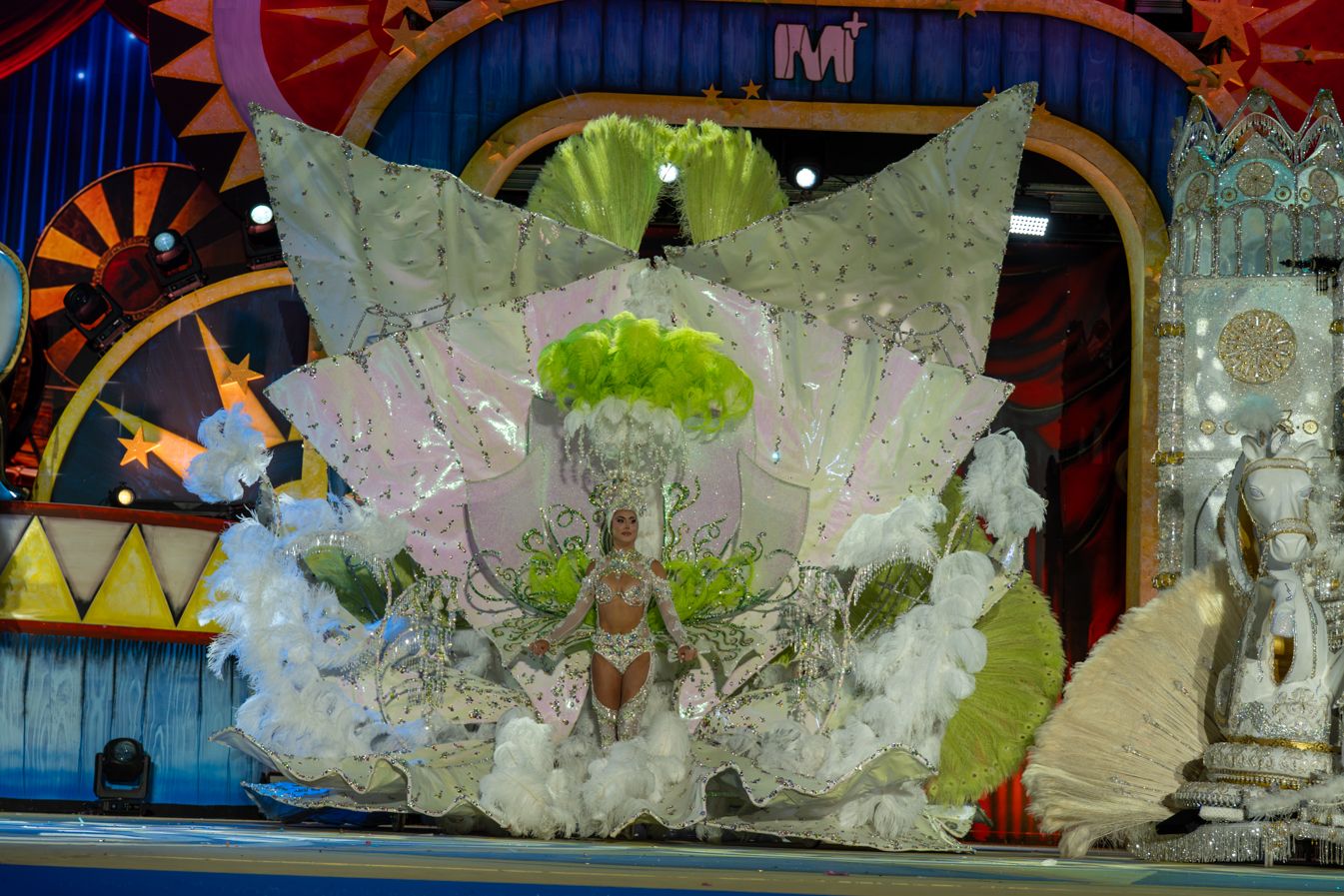 La magia y el color inundaron el escenario de Maspalomas este domingo 15 de marzo en una noche inolvidable donde Estrella Jiménez de Bruin fue proclamada Reina del Carnaval 2026 luciendo la espectacular fantasía “Alquimia”, diseñada por Josué Saavedra Suárez y bajo el patrocinio de Clínicas Doctora Hernández. La nueva soberana cautivó al jurado presidido por la modelo Laura Ojeda.