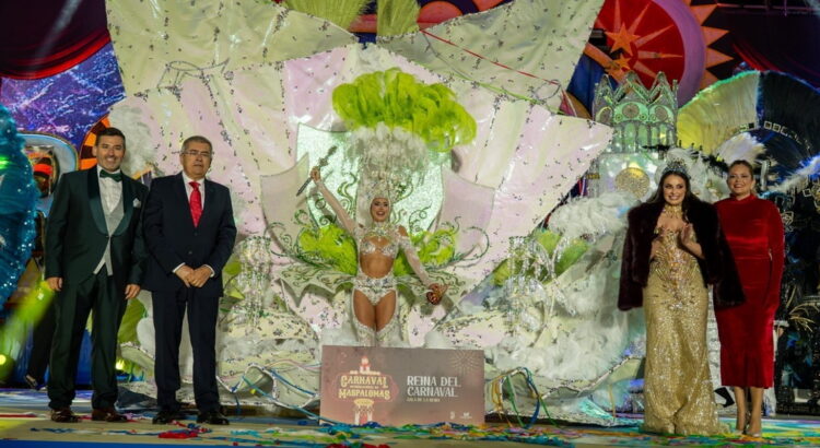 La magia y el color inundaron el escenario de Maspalomas este domingo 15 de marzo en una noche inolvidable donde Estrella Jiménez de Bruin fue proclamada Reina del Carnaval 2026 luciendo la espectacular fantasía “Alquimia”, diseñada por Josué Saavedra Suárez y bajo el patrocinio de Clínicas Doctora Hernández. La nueva soberana cautivó al jurado presidido por la modelo Laura Ojeda.