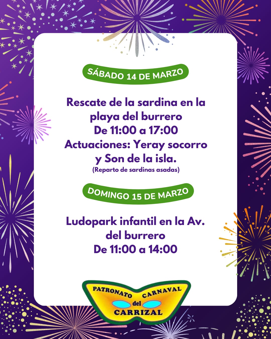 Entre los actos destacados se encuentran el pregón, el carnaval infantil e inclusivo, la gala drag, el concurso de murgas -que alcanza su 19ª edición- y la tradicional cabalgata, acompañada por los conocidos fuegos artificiales en la playa del Burrero, uno de los grandes atractivos del evento.