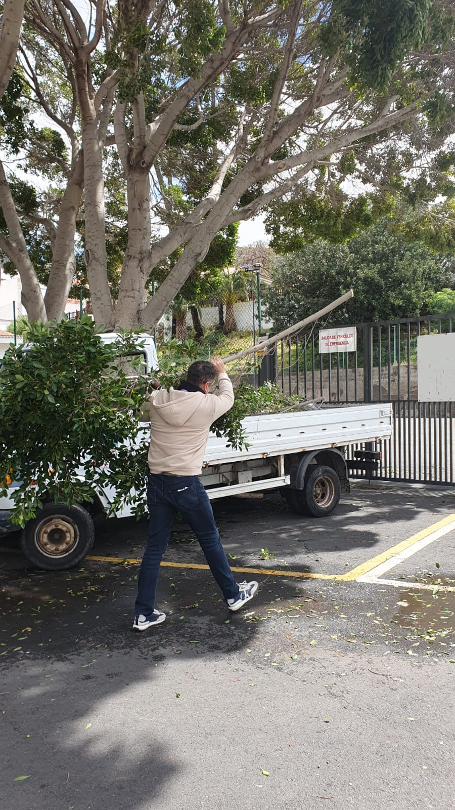Otras incidencias han sido las caídas de hojas de palmera y ramas en algunas vías, que han sido retiradas por los servicios públicos municipales y el personal de Limpieza Viaria. También se cayó la “V” de “Vecindario” de la rotonda de entrada al municipio.