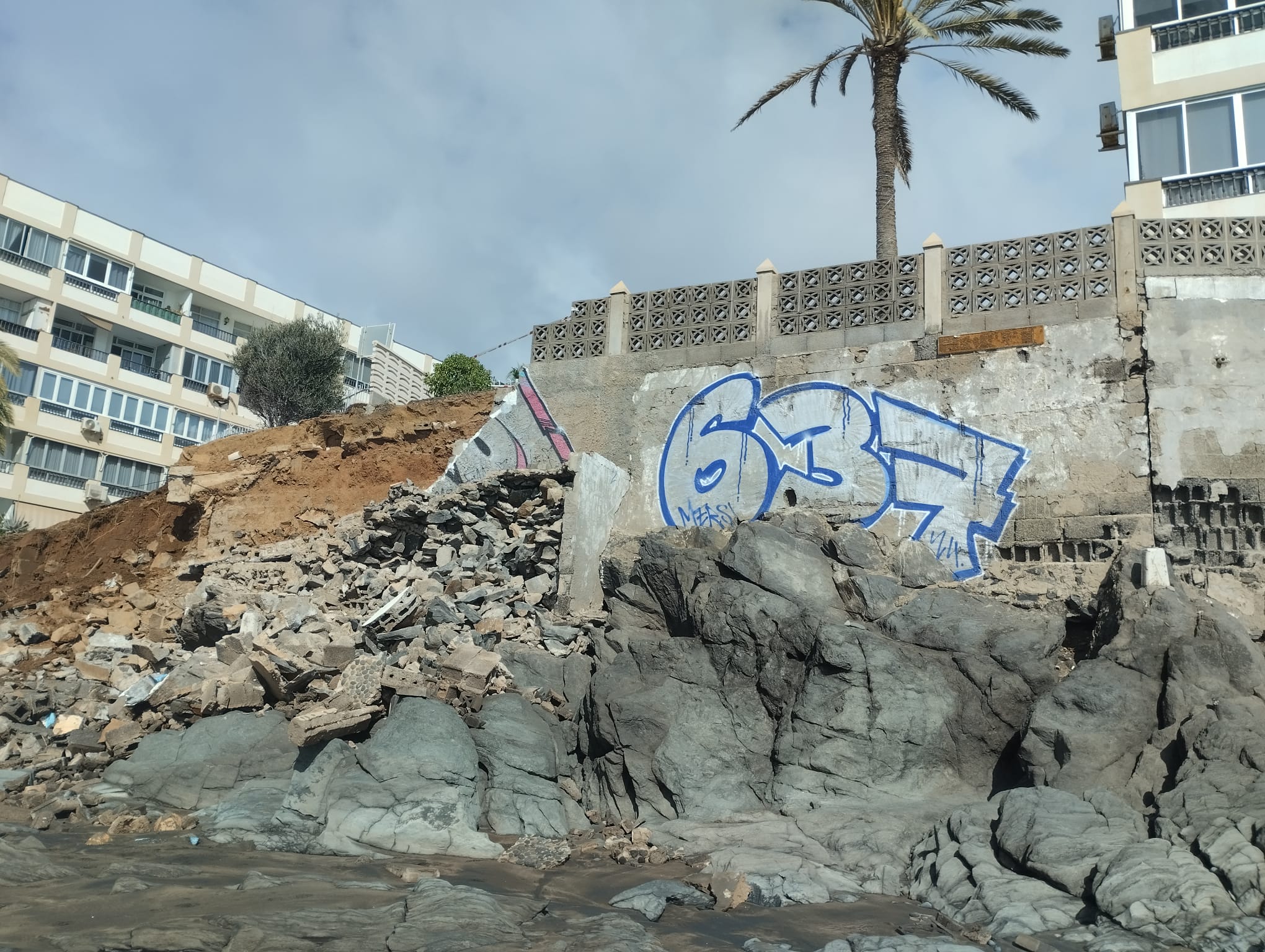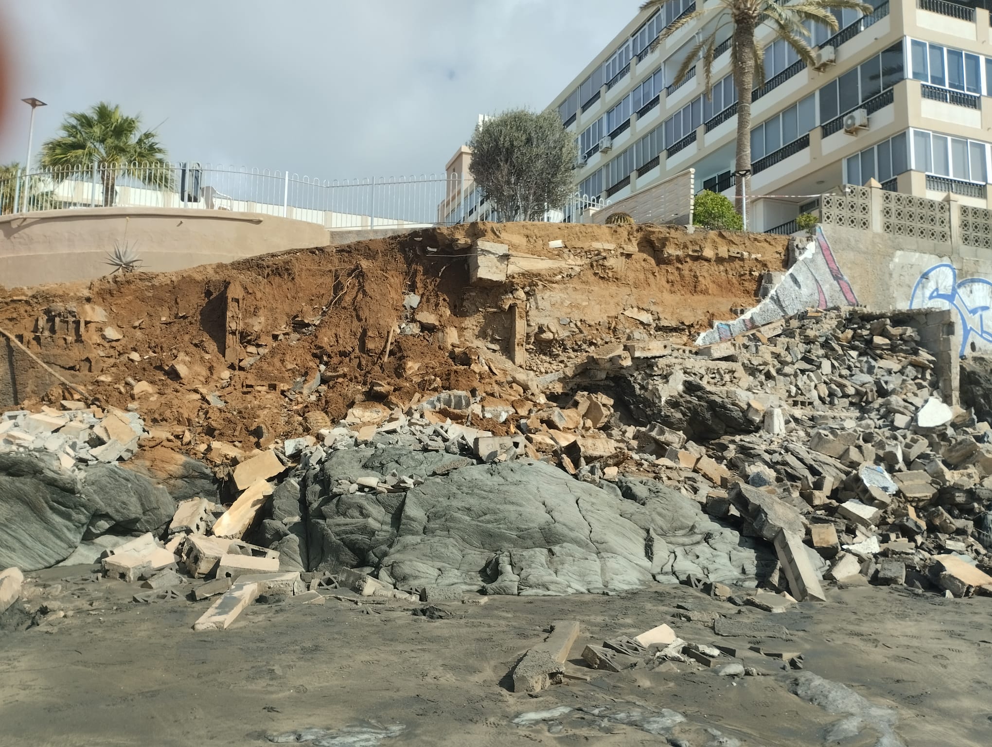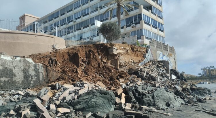 El área de Disciplina Urbanística del Ayuntamiento de San Bartolomé de Tirajana ha emitido un decreto de medidas provisionales urgentes tras el derrumbe parcial de un muro de contención en los Apartamentos Águila Playa, ocurrido durante la noche del 18 de marzo. La caída de la estructura de bloques, que afectó un tramo de aproximadamente 20 metros, provocó que los escombros quedaran esparcidos sobre la arena de la Playa del Águila, dejando además un talud de tierra expuesto con riesgo de nuevos desprendimientos. Ante los acontecimientos, el consistorio ha ordenado el precinto inmediato de la zona de deslinde con el dominio público marítimo-terrestre y el cierre del paseo marítimo afectado para garantizar la seguridad de residentes y bañistas.