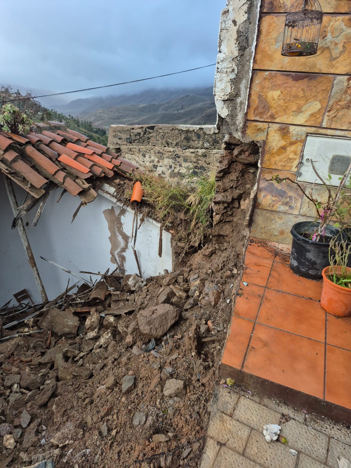Las medianías de San Bartolomé de Tirajana, en situación crítica por la borrasca: carreteras cortadas, desprendimientos y una vivienda afectada