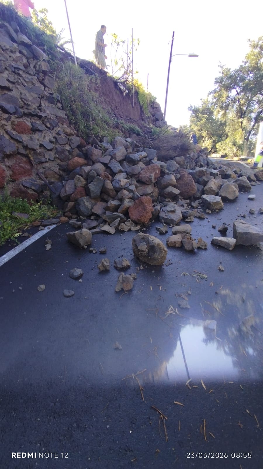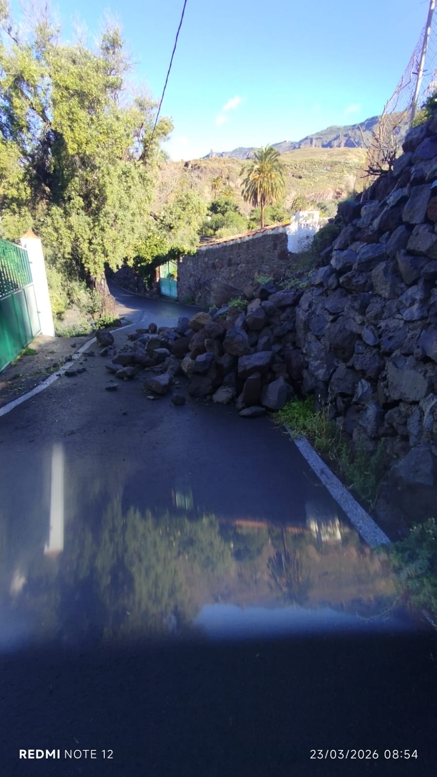 Santa Lucía de Tirajana, lunes 23 de marzo de 2026. La borrasca Therese no se marchó el domingo de Santa Lucía de Tirajana, la madrugada de este lunes estuvo presente con abundantes lluvias y fuertes vientos que provocaron numerosas incidencias como desprendimientos, cortes de carretera, problemas en las alcantarillas, algunas inundaciones y cortes de suministro eléctrico. El personal de Servicios Públicos, Limpieza Viaria, Protección Civil, Polícía Local y otras áreas municipales, con la colaboración del servicio de carreteras del Cabildo de Gran Canaria, ha estado trabajando en las últimas 24 horas para resolver las diferentes incidencias.