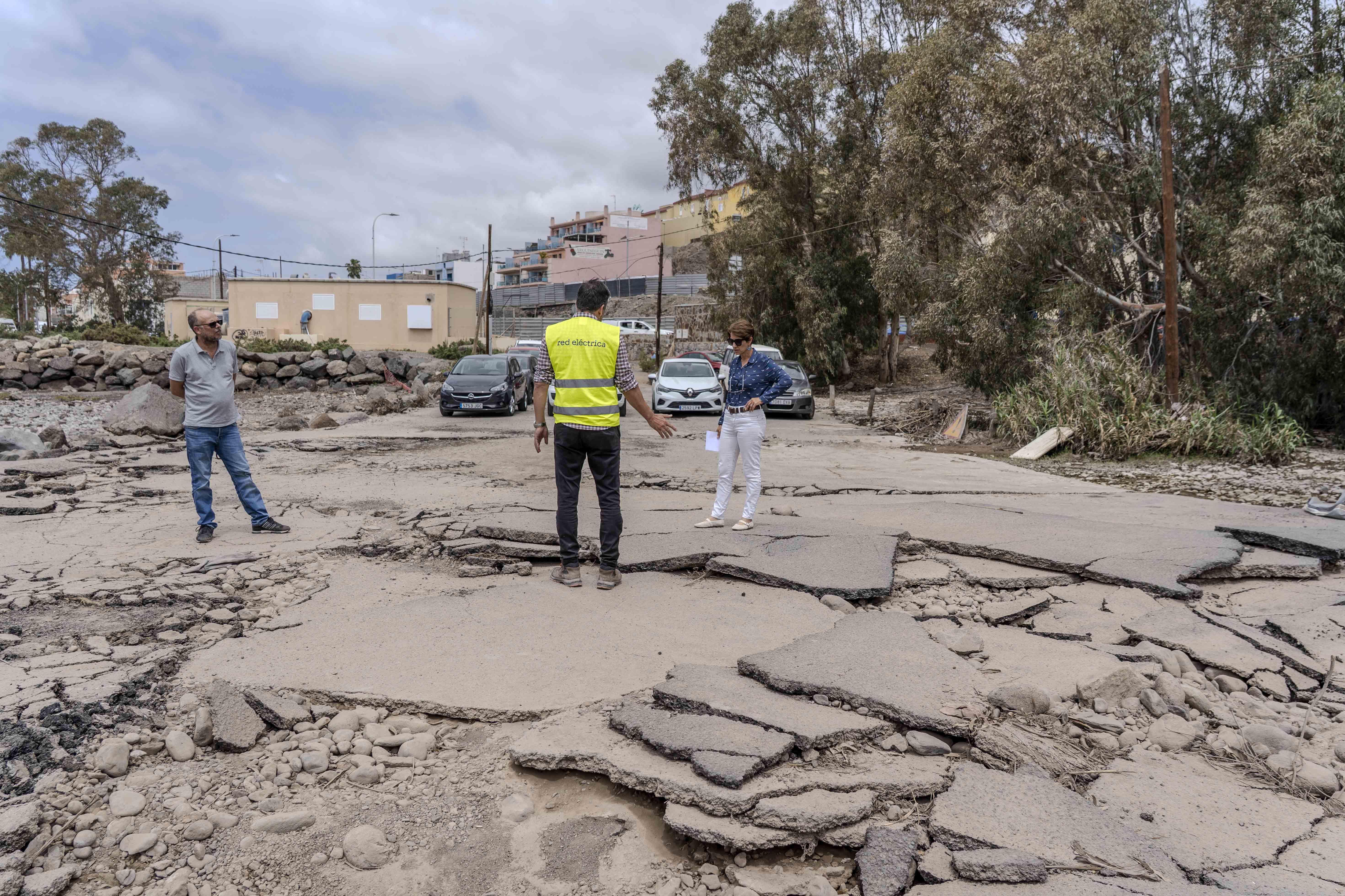 “El asfaltado ha quedado seriamente dañado por el caudal del barranco” ha señalado la alcaldesa, señalando que se trata de un ámbito cuya competencia corresponde al Consejo Insular de Aguas. “Vamos a aprovechar la maquinaria de Red Eléctrica que ya están por la zona para retirar el asfalto que no se encuentra en buen estado y habilitar un camino provisional”, ha explicado.