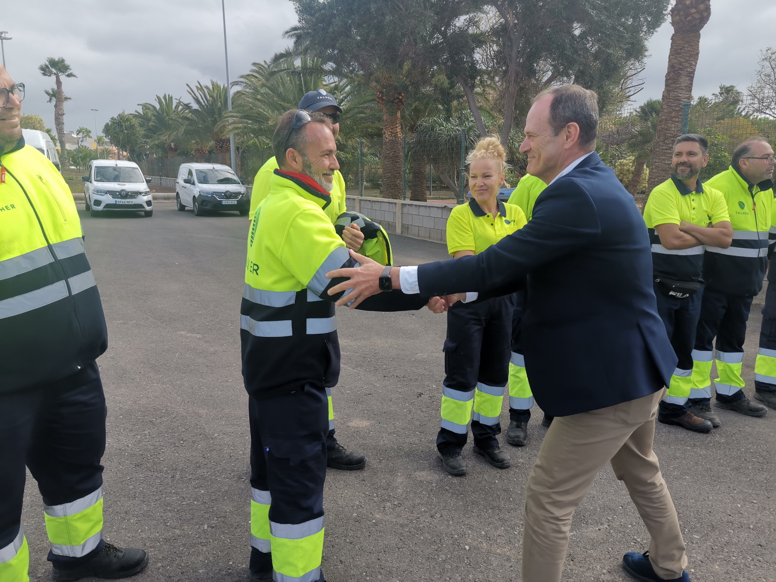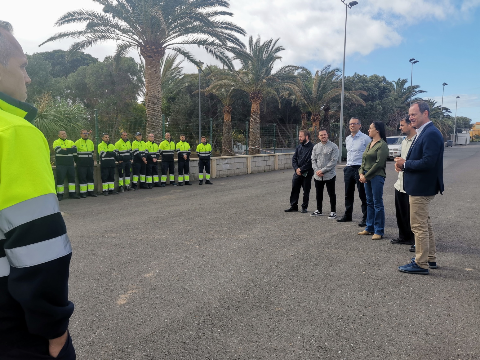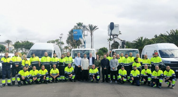 El Ayuntamiento de Agüimes presentó, durante la mañana de este miércoles, el nuevo servicio de mantenimiento de parques y jardines, que contará con 32 operarios, 14 vehículos y maquinaria especializada para la conservación de zonas verdes del municipio. La presentación tuvo lugar en los aparcamientos del Recinto Ferial de Agüimes, en el Cruce de Arinaga, y el acto contó con la presencia del alcalde, Óscar Hernández, la concejala de Parques y Jardines, Juani Martel, y representantes de la empresa Talher, adjudicataria del servicio.